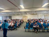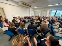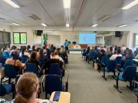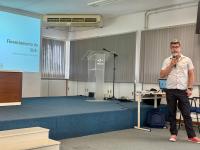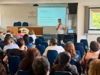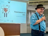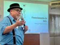 Logo após a abertura, os participantes receberam orientações sobre o funcionamento do SUS, de Édson Passos da Silva, profissional com cerca de 17 anos de atuação na área da Saúde. Atualmente trabalhando em Parobé, Édson abordou o tema “Financiamento do SUS – Ameaças e Oportunidades”, trazendo um panorama sobre desafios e perspectivas para garantir a sustentabilidade do sistema.