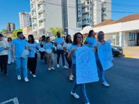 A atividade teve início em frente à Câmara de Vereadores e reuniu profissionais da rede municipal de saúde, gestores e moradores. Durante o trajeto, foram distribuídos folders informativos com orientações sobre bem-estar emocional, sinais de alerta e os serviços de saúde mental disponíveis no município.