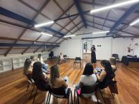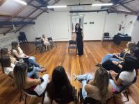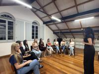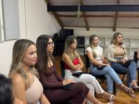 O primeiro encontro teve caráter de acolhimento e integração entre as candidatas. Na oportunidade, as nove concorrentes falaram sobre sua rotina e os motivos pelos quais desejam representar o município, além de conhecerem a agenda prevista para os próximos dias do concurso.