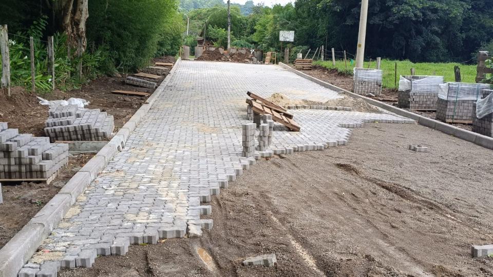 Estrada Epitácio Fernandes é bloqueada para colocação de blocos de concreto em Taquara